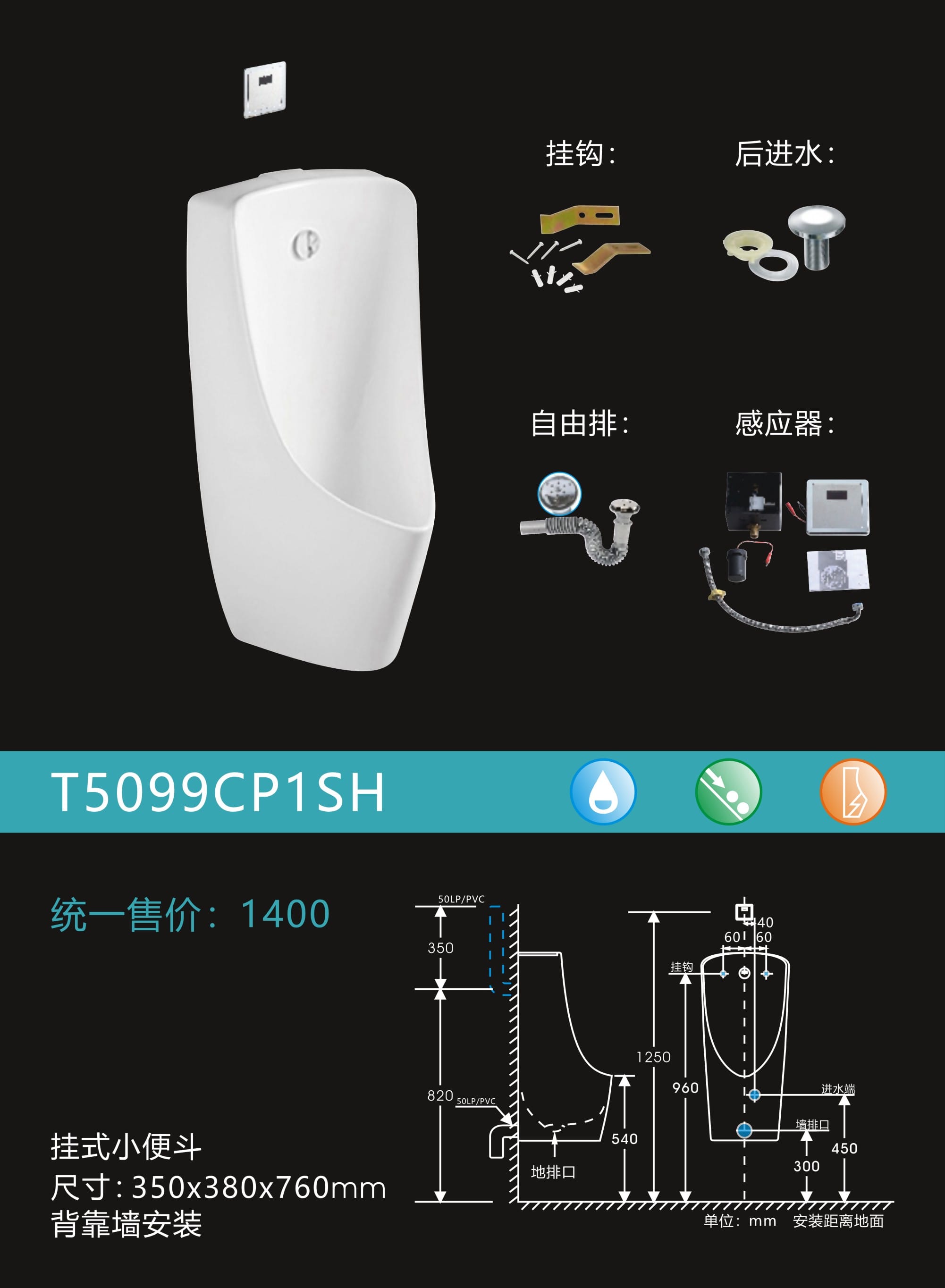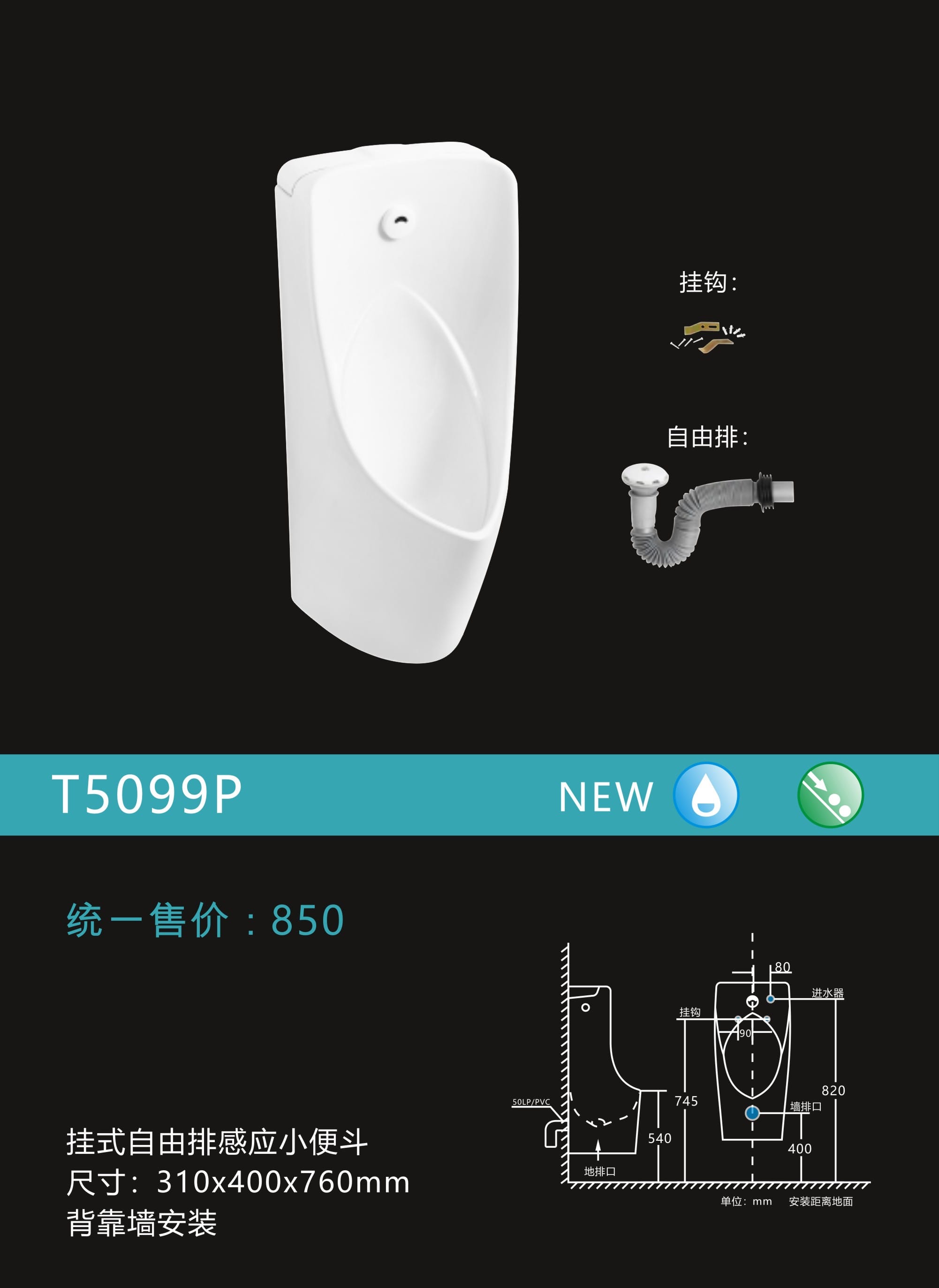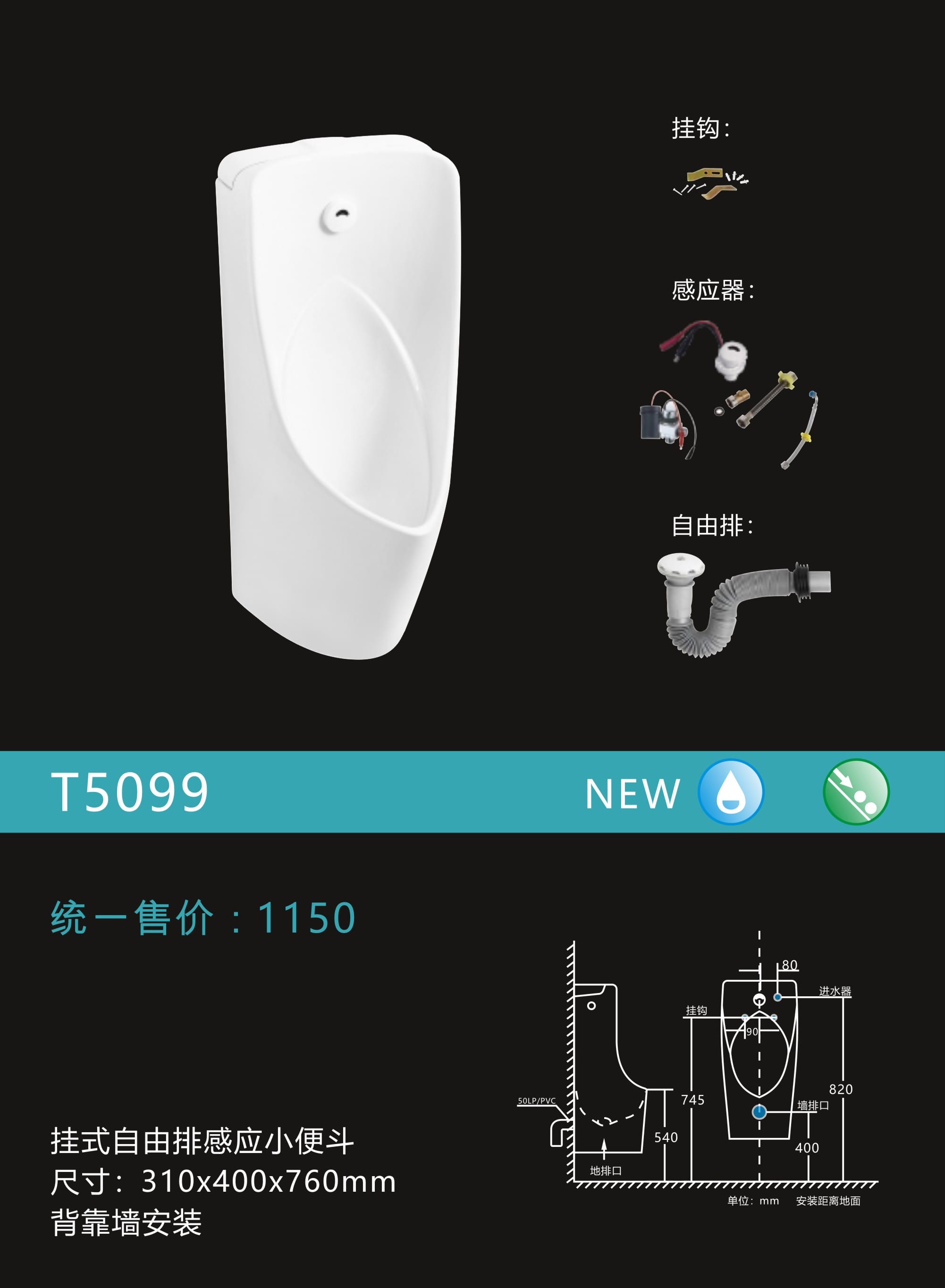 感应挂式小便器