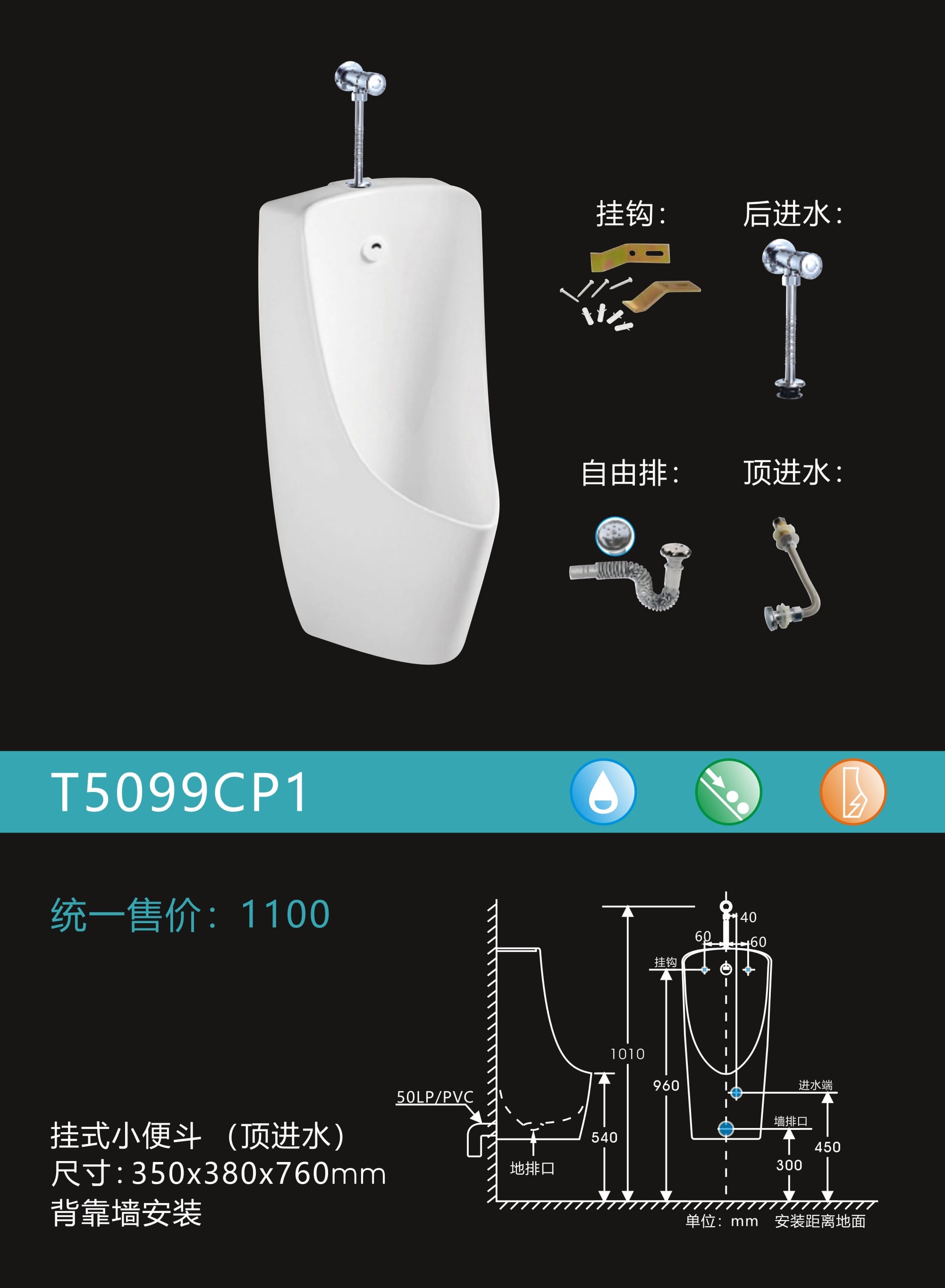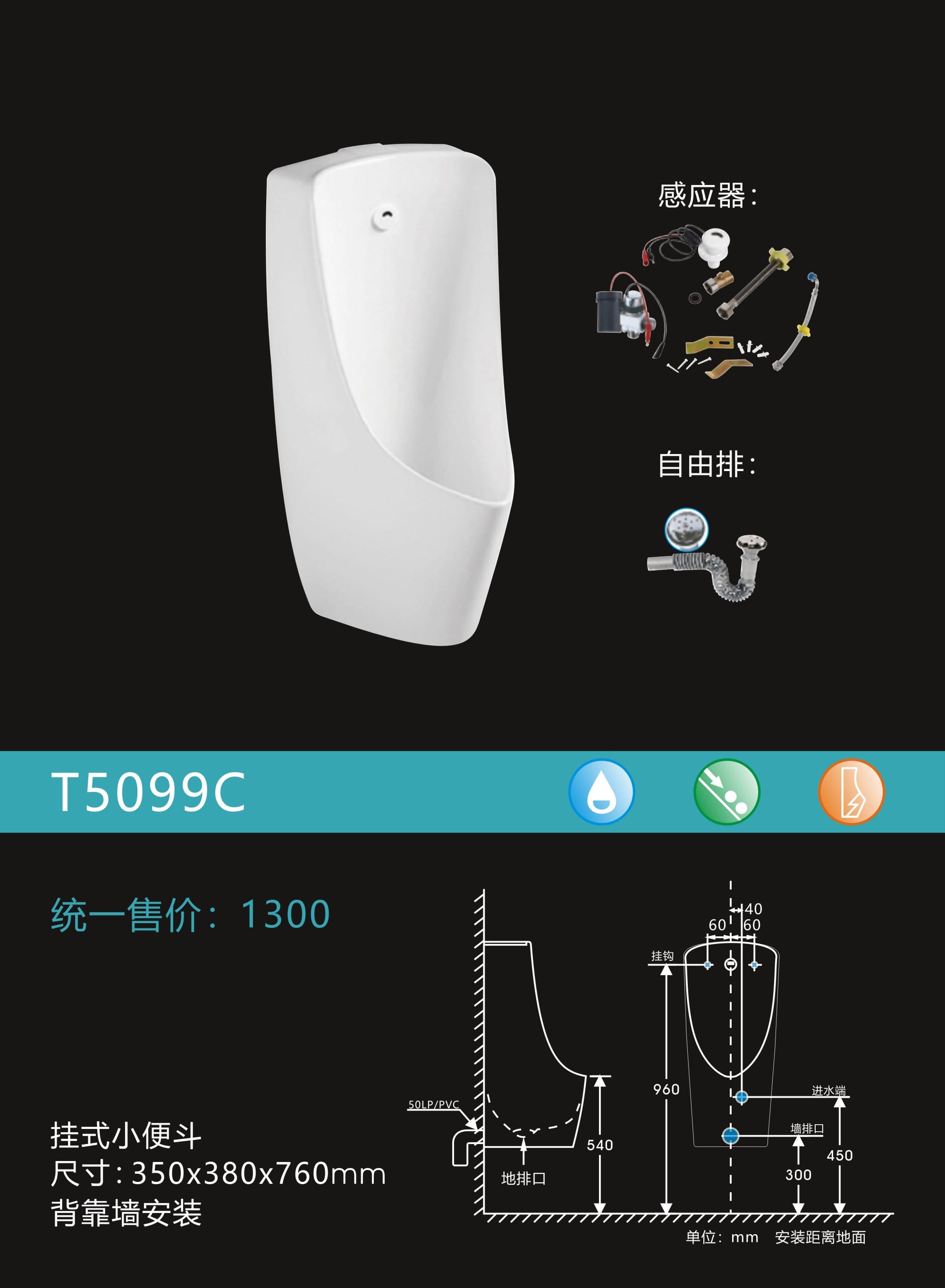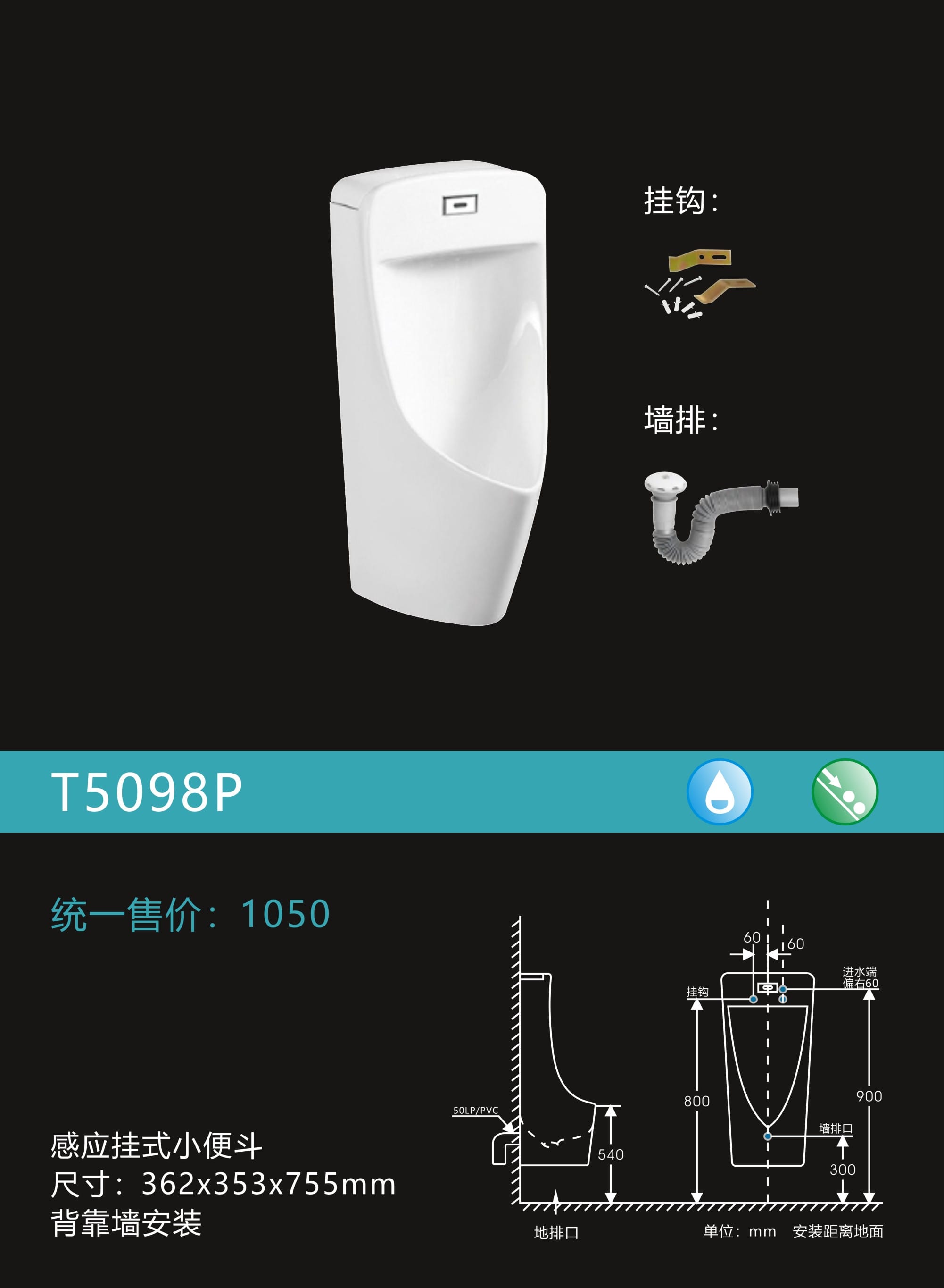 感应挂式小便器