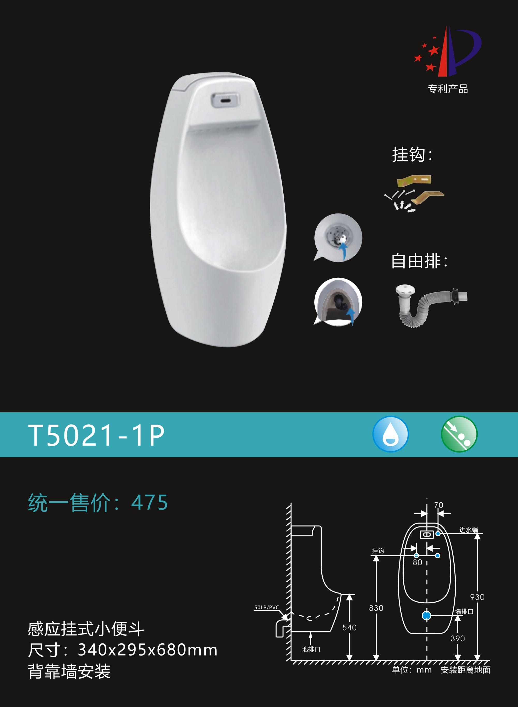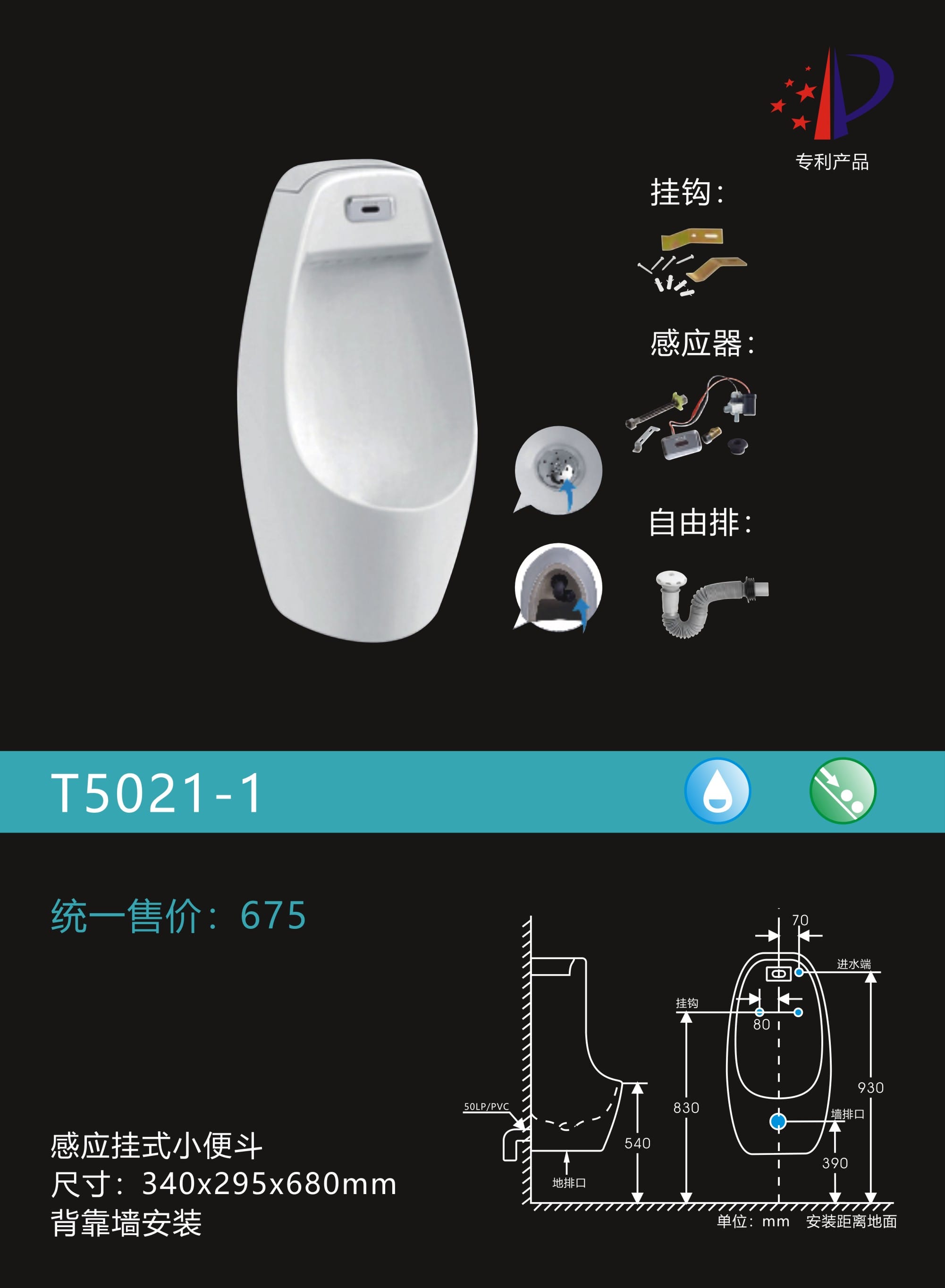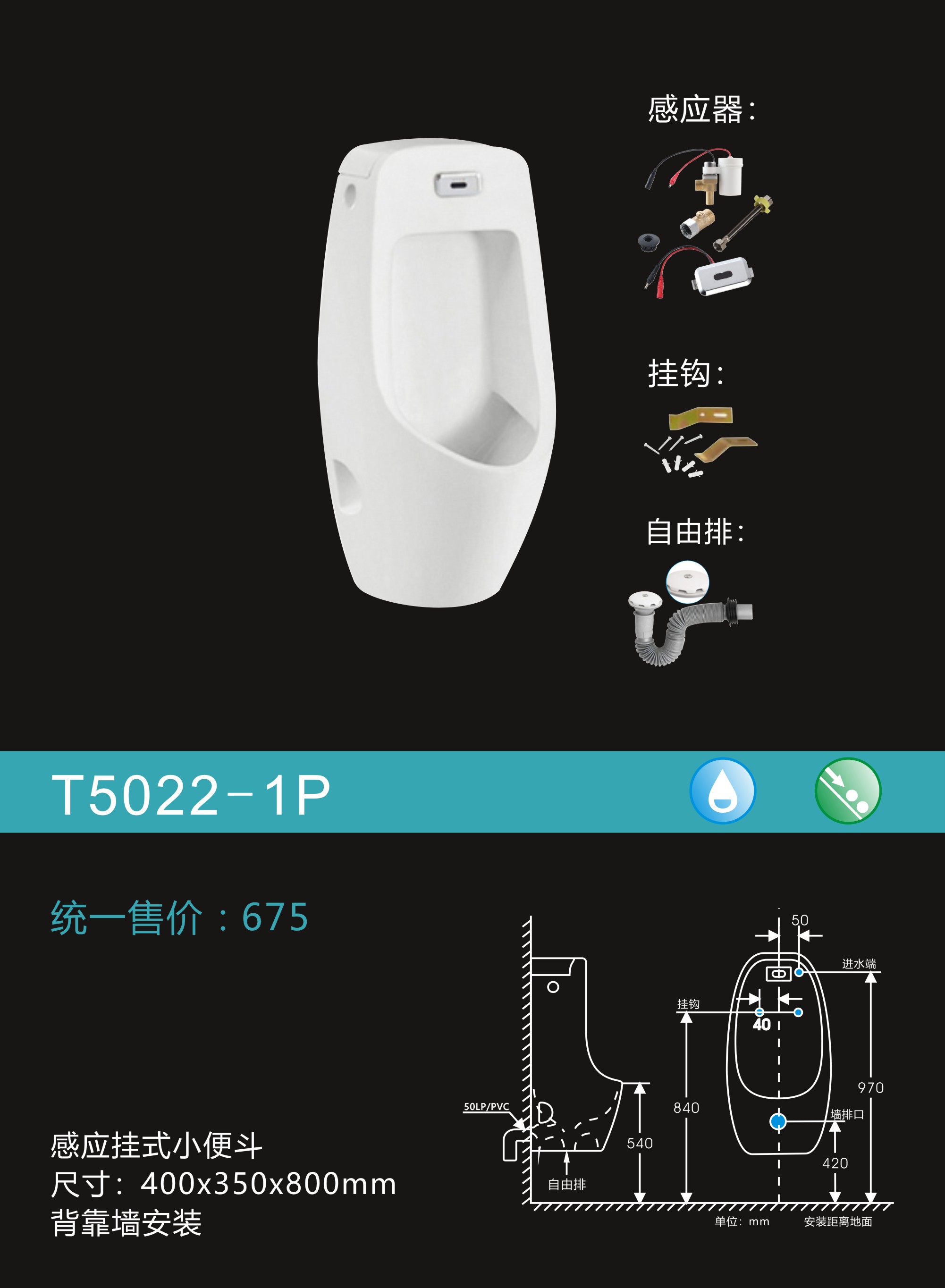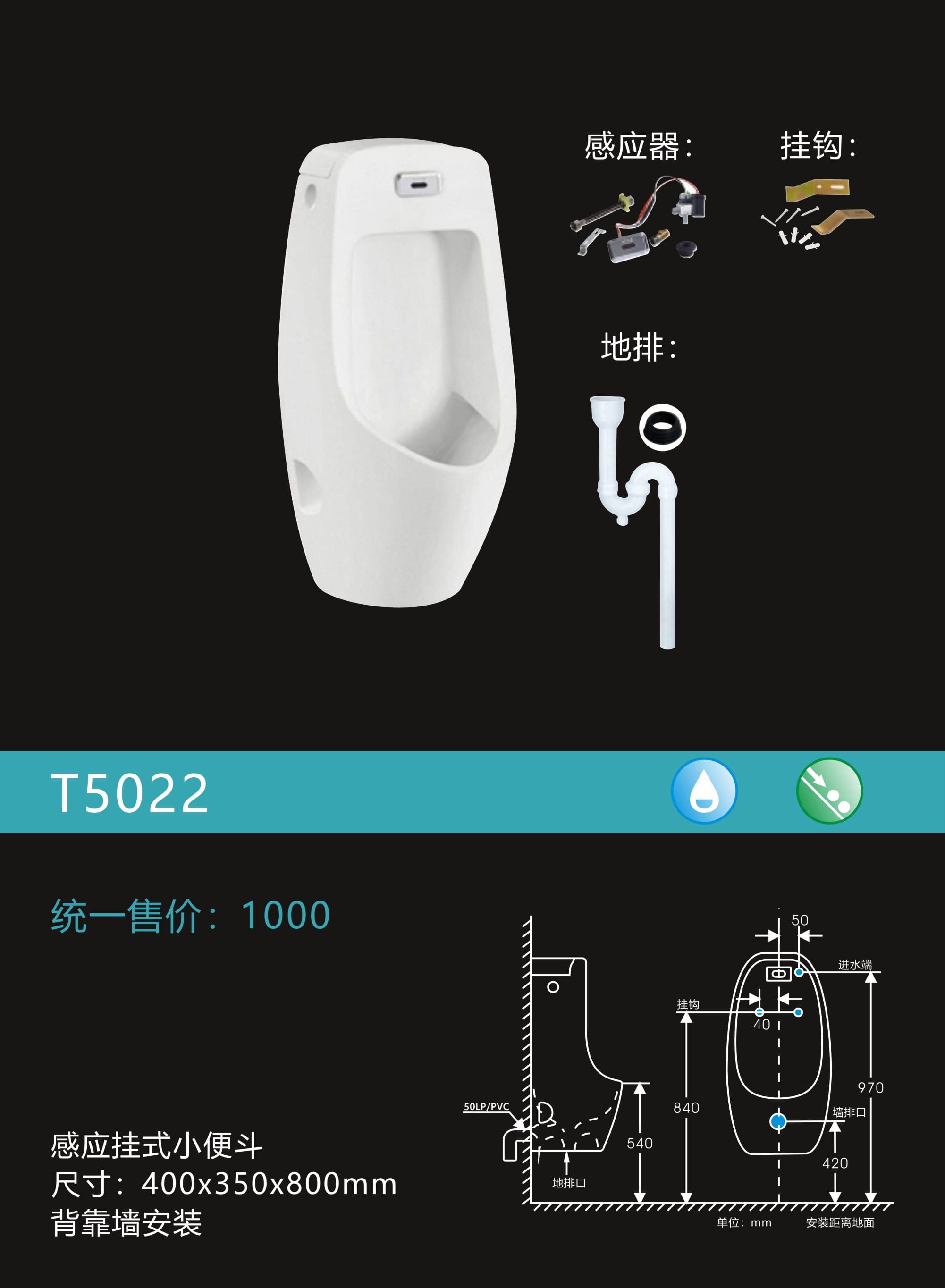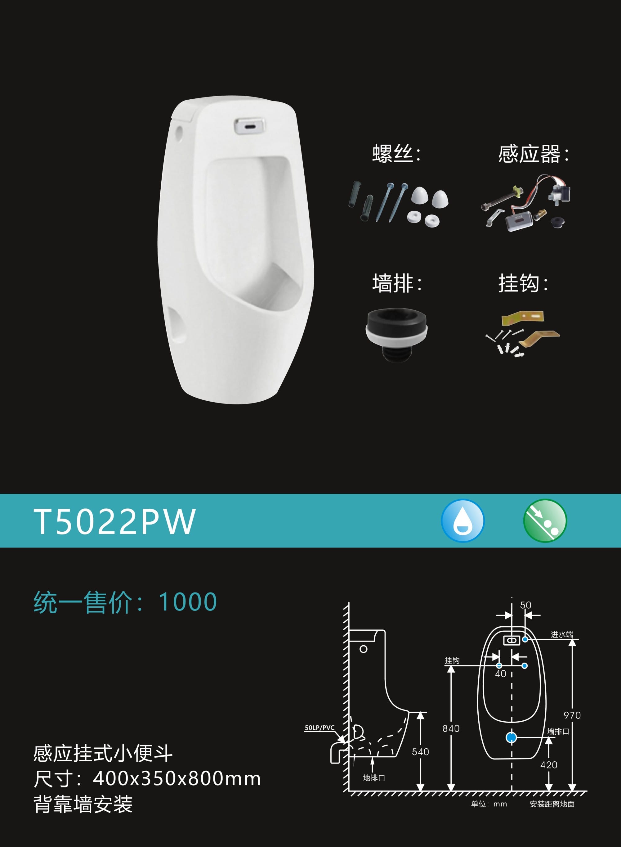 感应挂式小便器