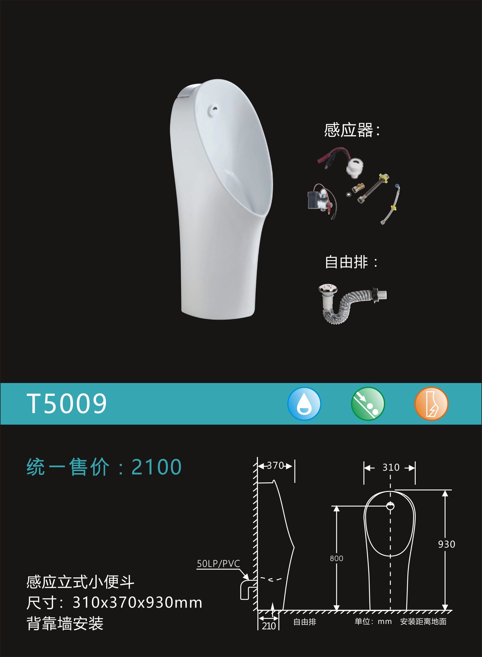 感应立式小便器