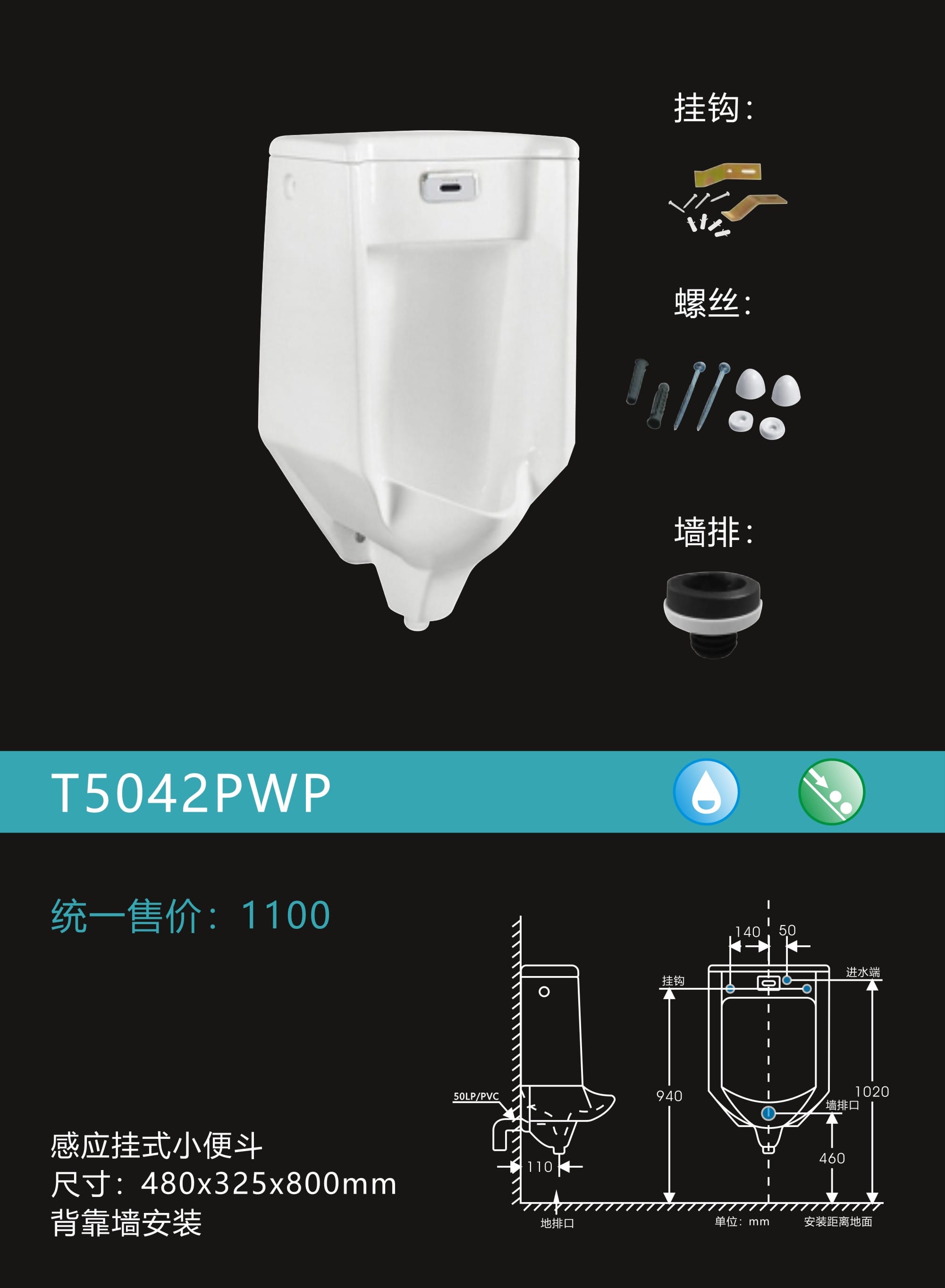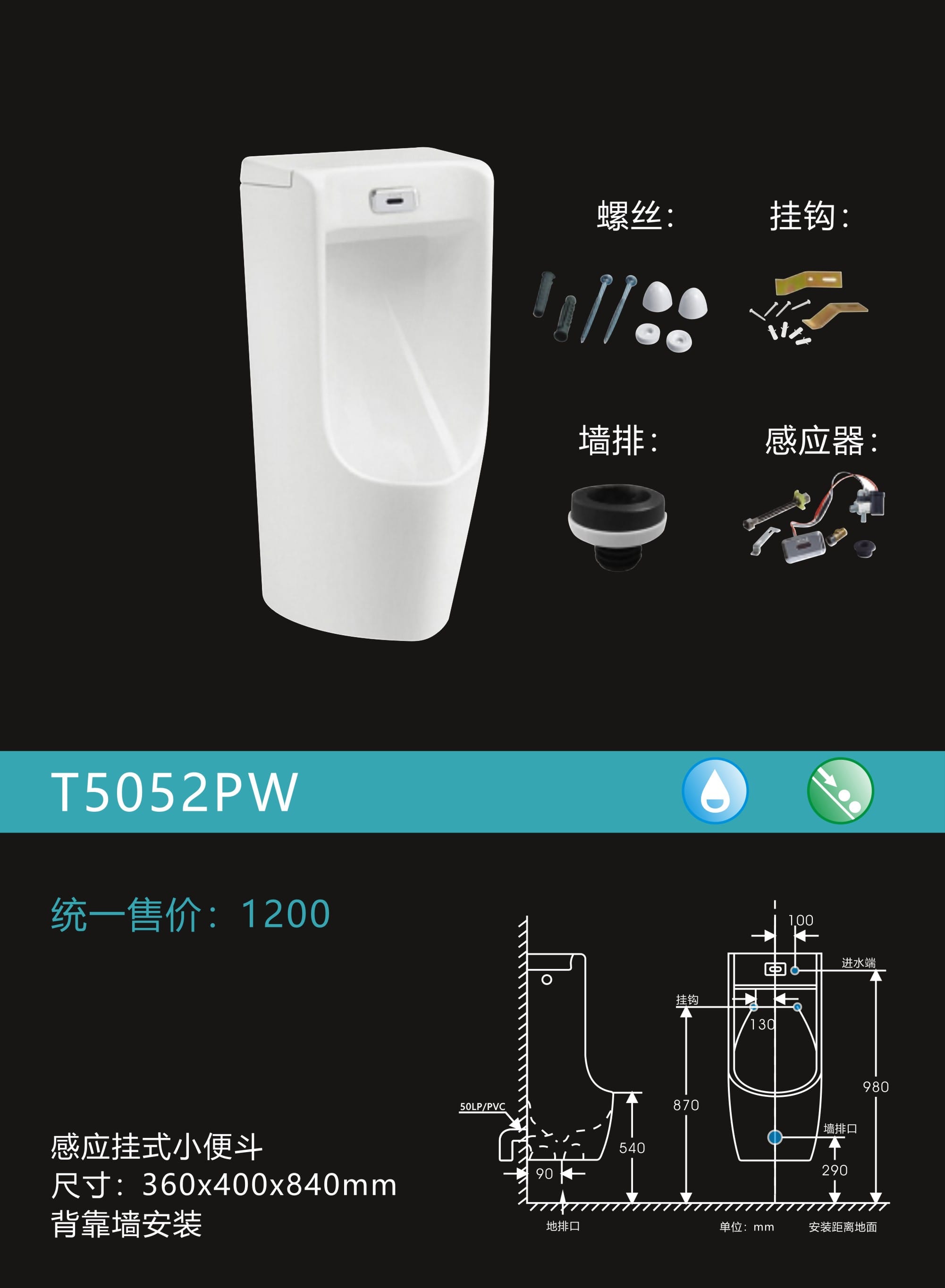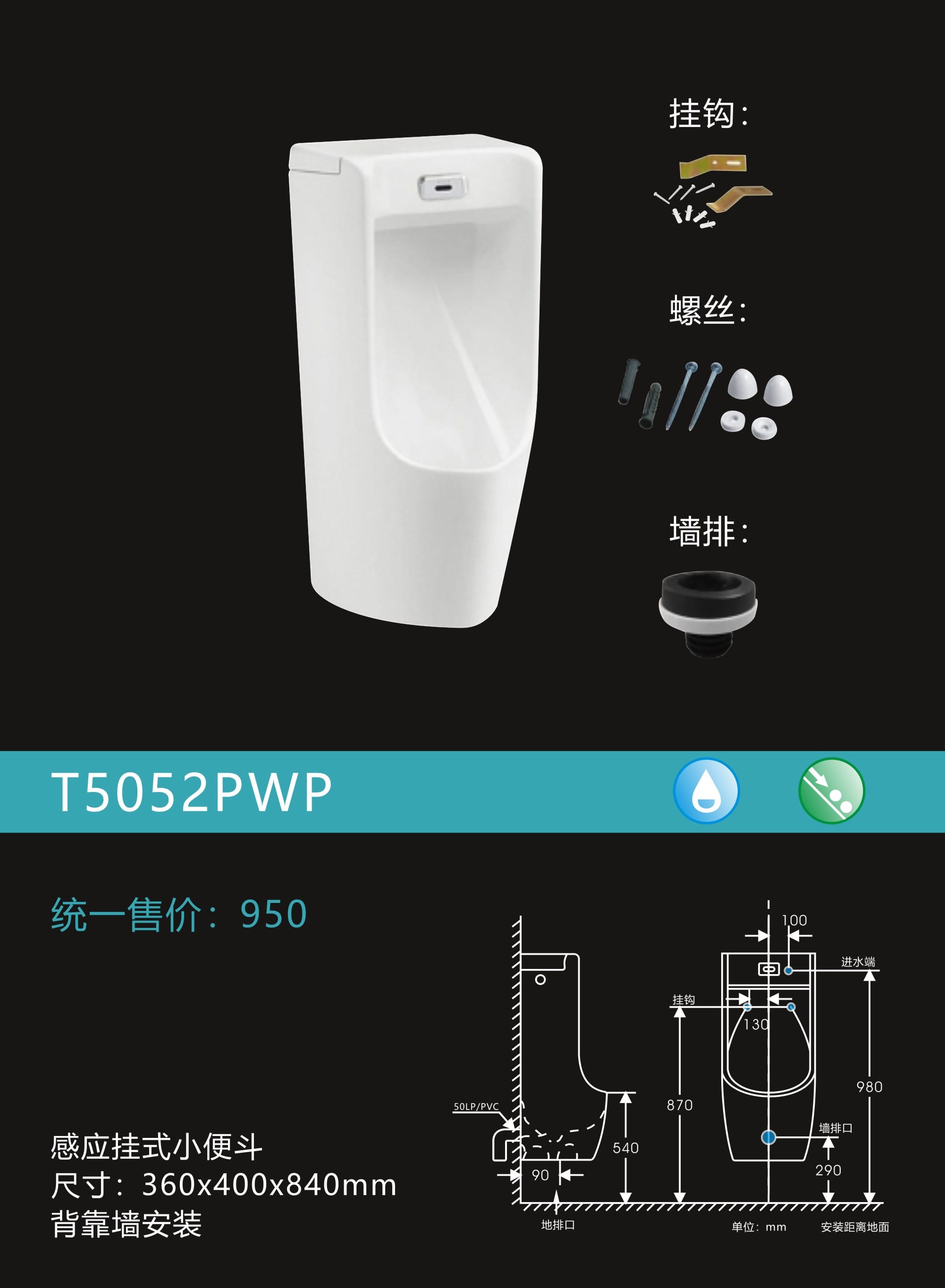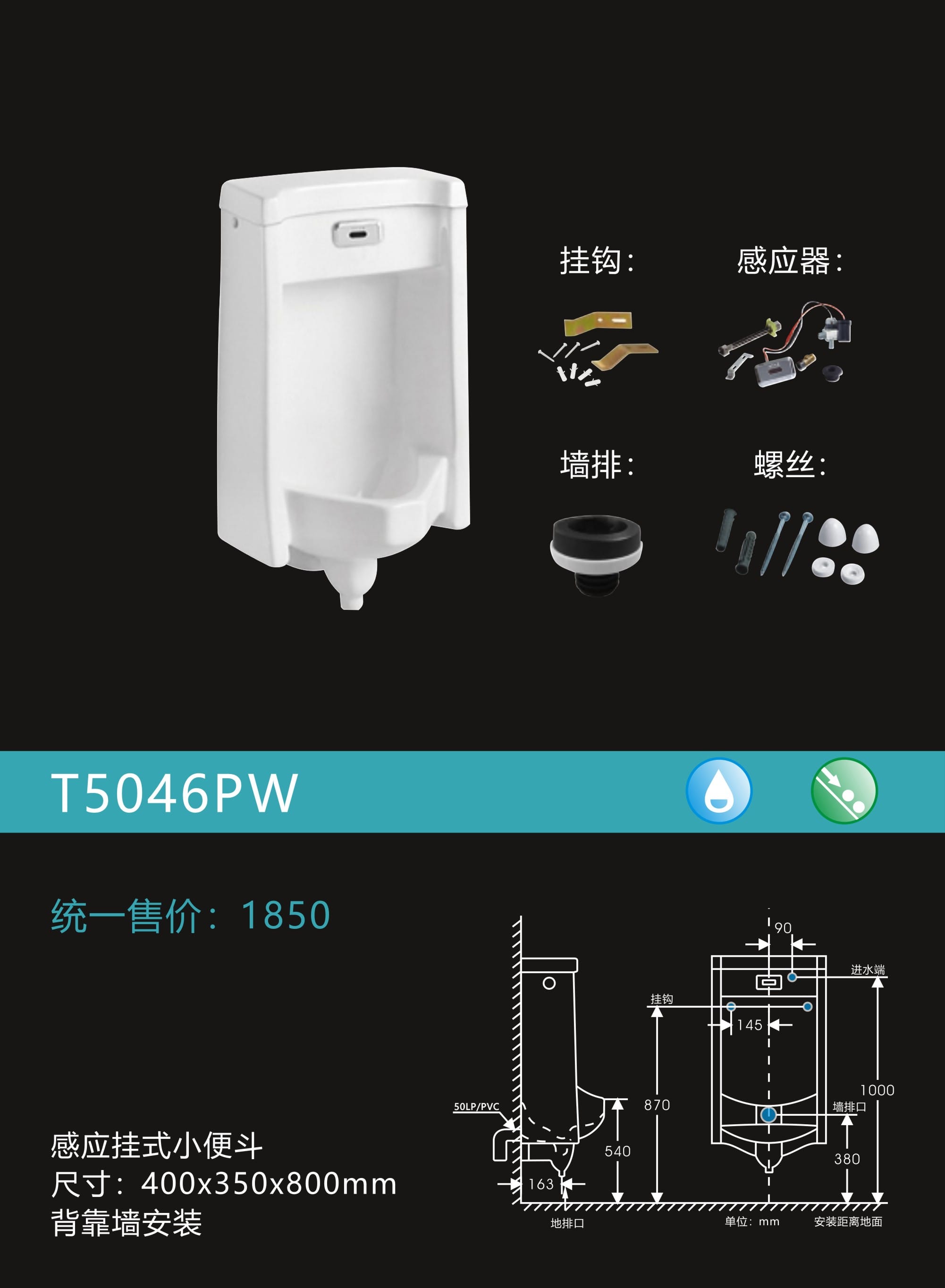 感应挂式小便器