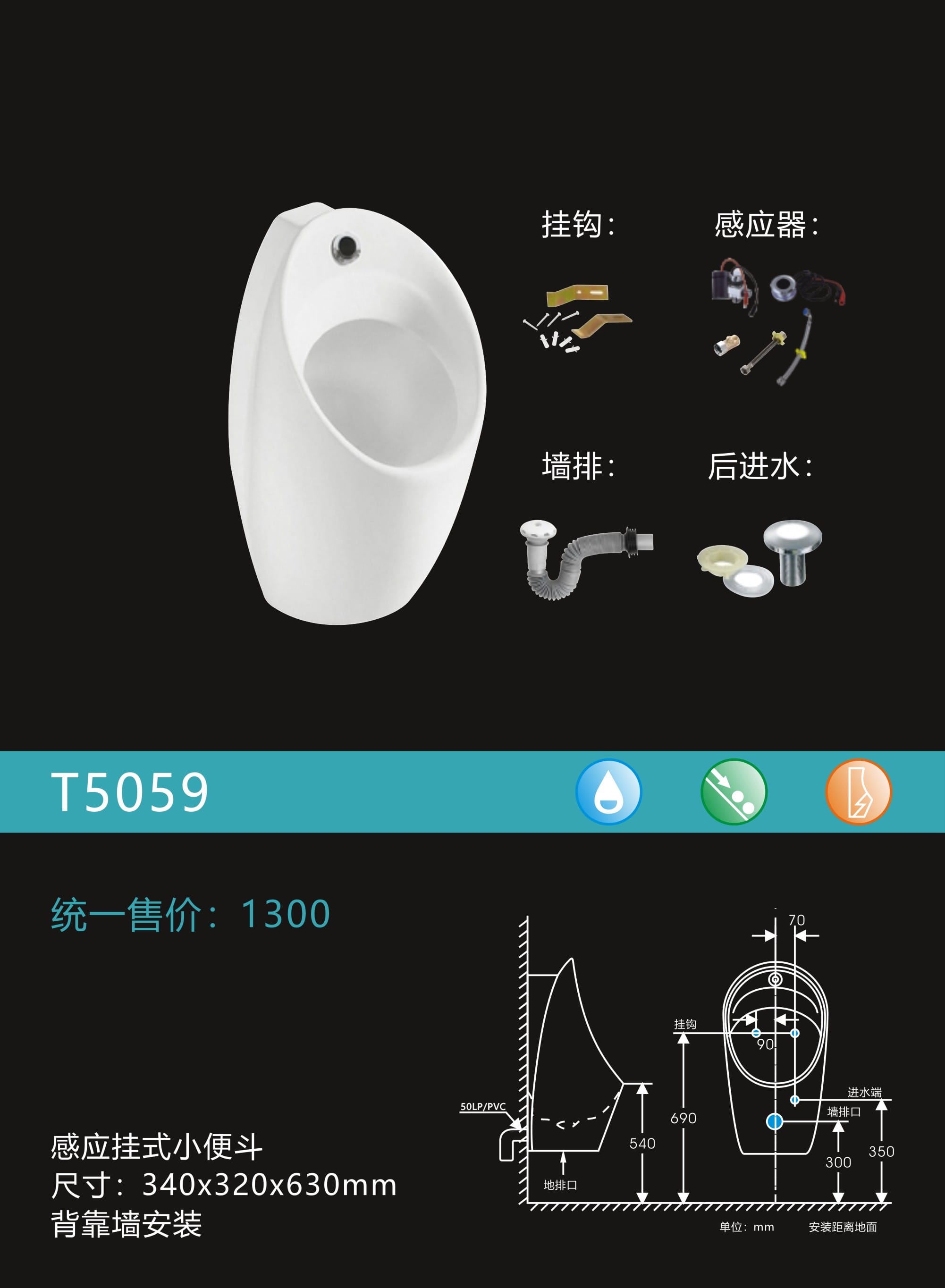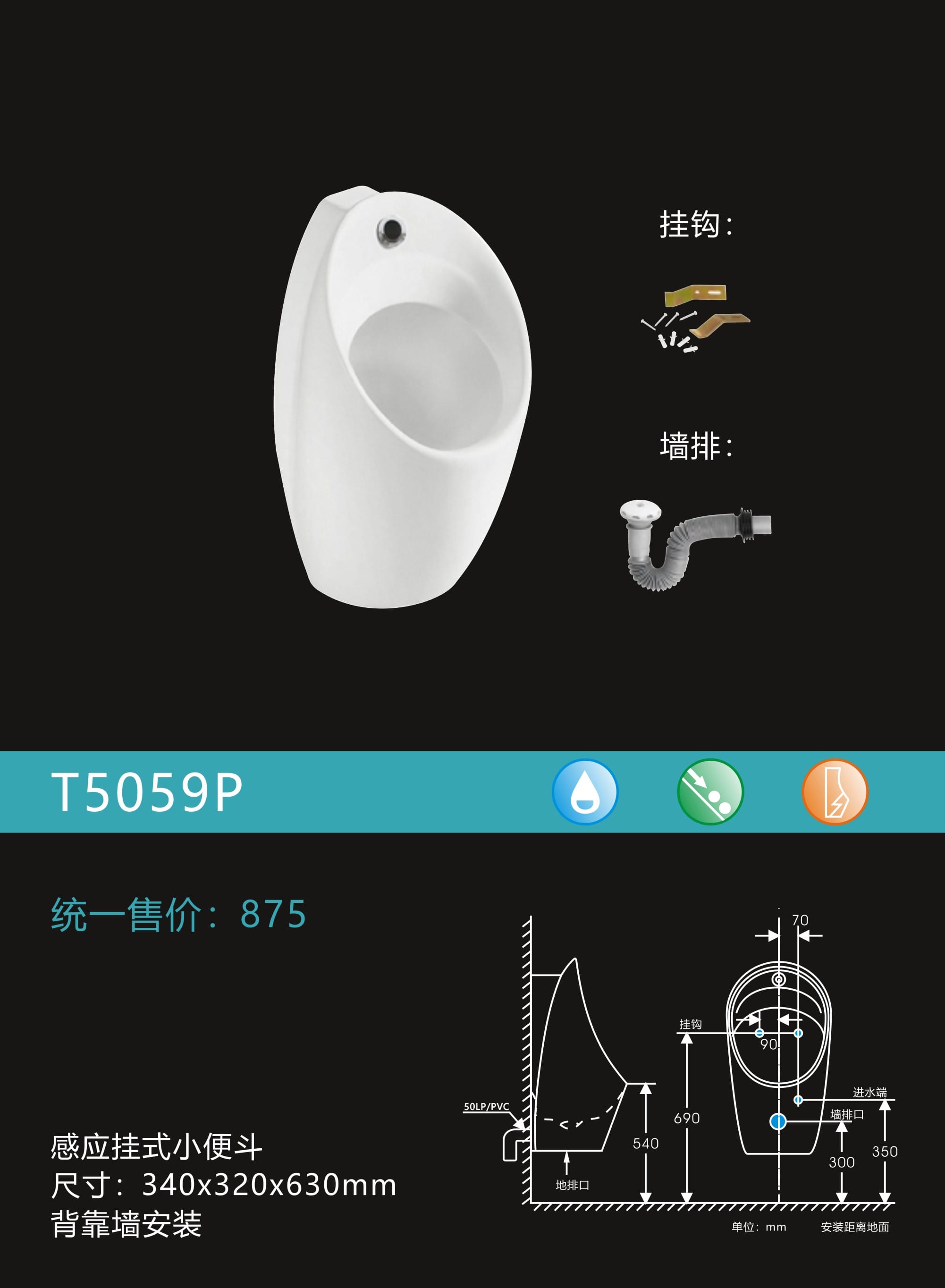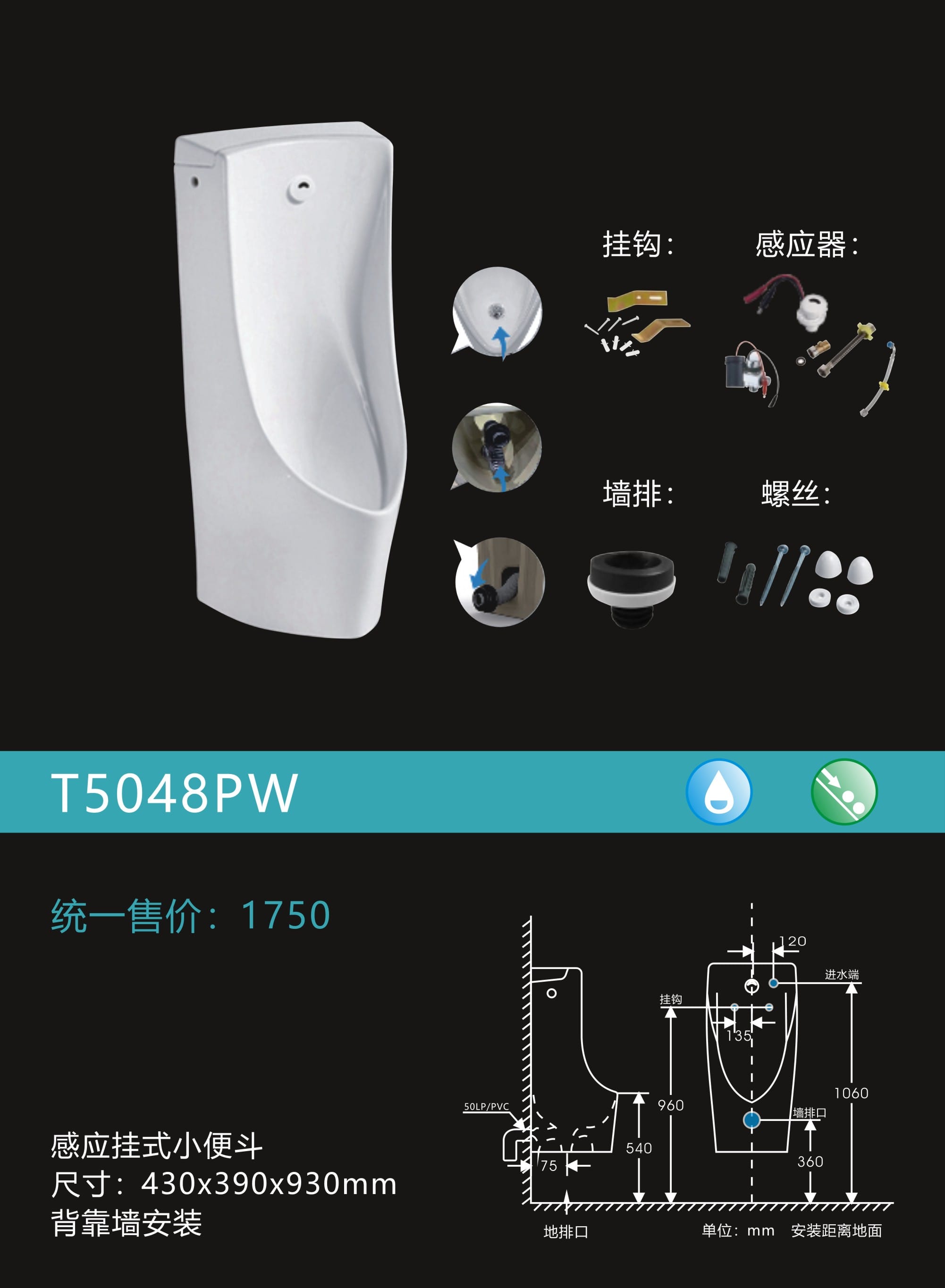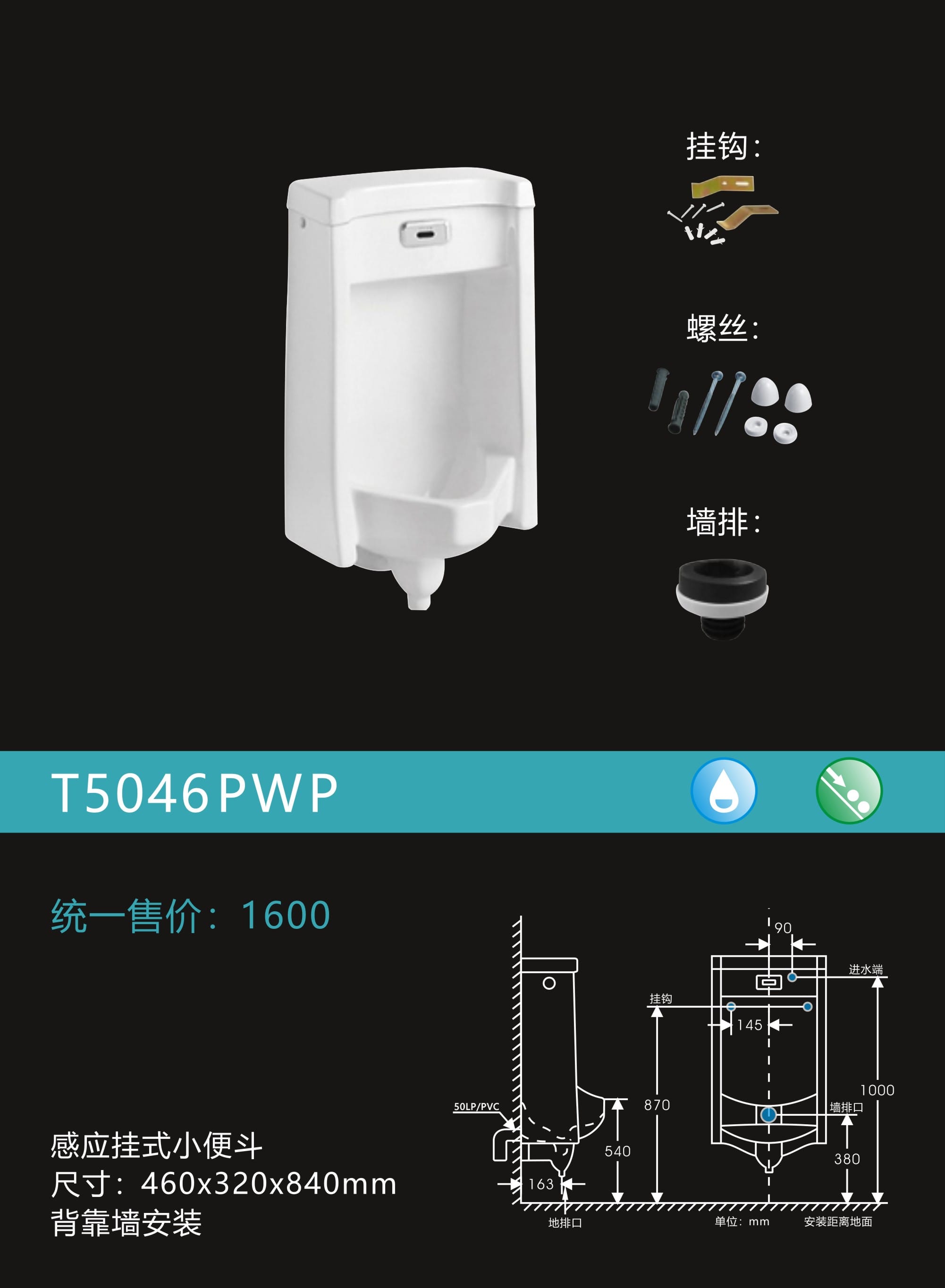 感应挂式小便器