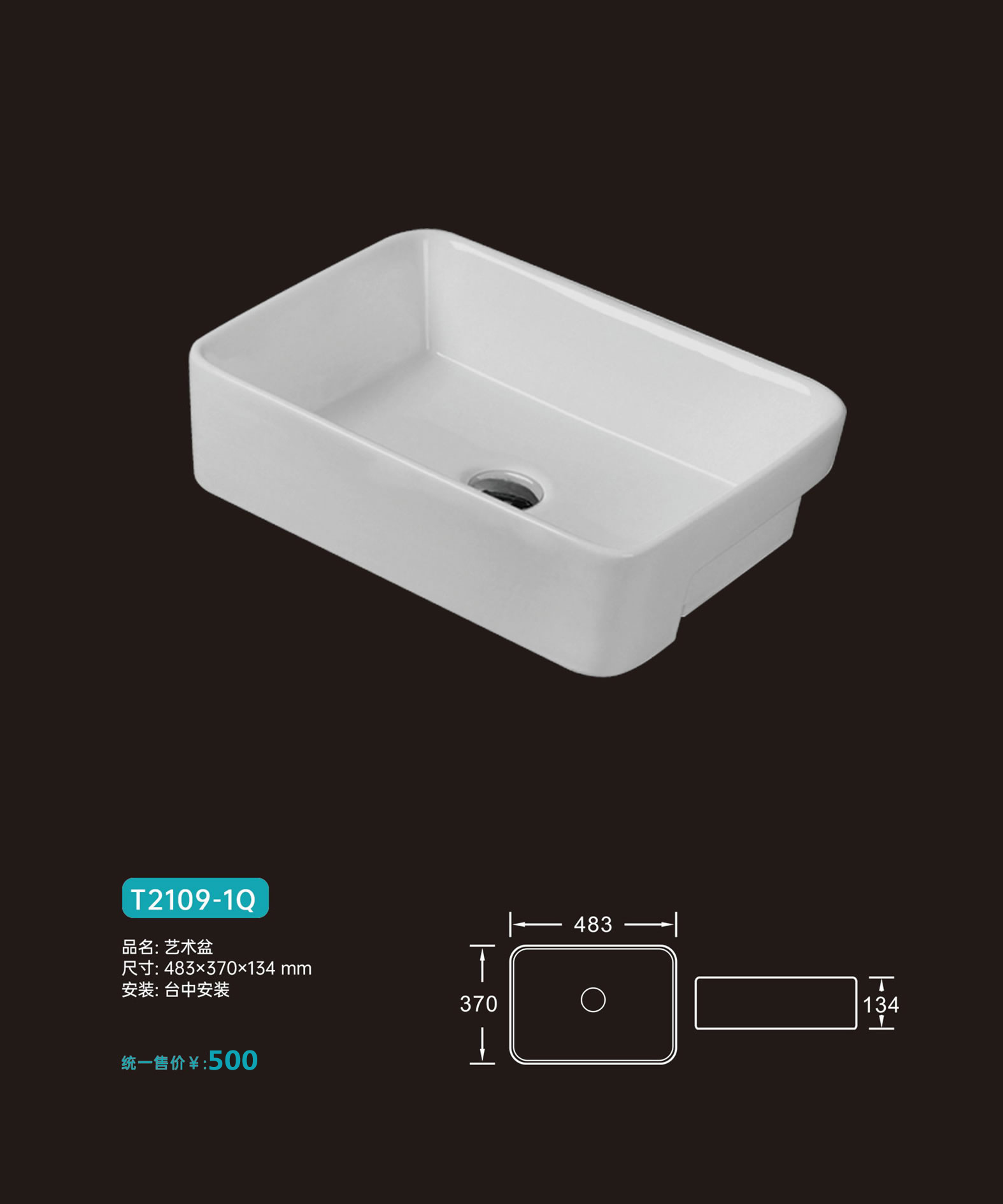 单圆角下挂盆对开门440陶瓷盆系列